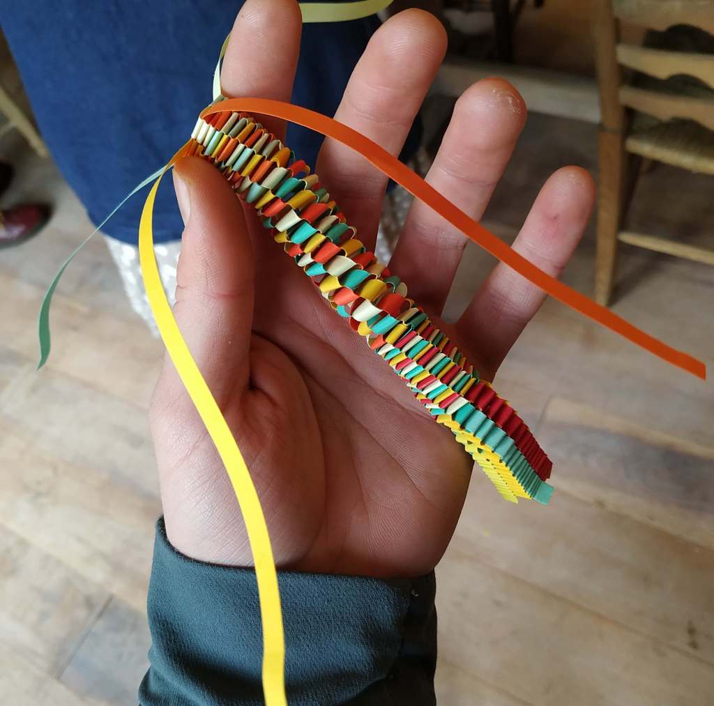 Our methodology has been somewhat emergent owing to needs to respond to and transform our project following the Covid-19 outbreak. We currently conduct our research through weekly online studios where, linked through an online platform, we purely work on basketry forms – developing both pieces of personal work, and of thematic interest such as looped cylinders and spirals, or mad and hexagonal weave. Our week-long studio trials extend over the length of the project, working in person where possible, but online if necessary. We happily conducted our first studio trials in person, where we developed work on several themes, most particularly exploring plaiting, skewed cubes, materials and plaiting round corners. Due to the outbreak of Covid-19, our first planned, public event., scheduled to take place in St Andrews’ unique 19th century Bell Pettigrew Museum, initiated by such eminent scholars as Darcy Wentworth Thompson for teaching natural history, was postponed and instead held online. Going forward, we hope to be back to working in person in 2021. We also hold fortnightly, semi-practical reading groups, bringing in students and other scholars.