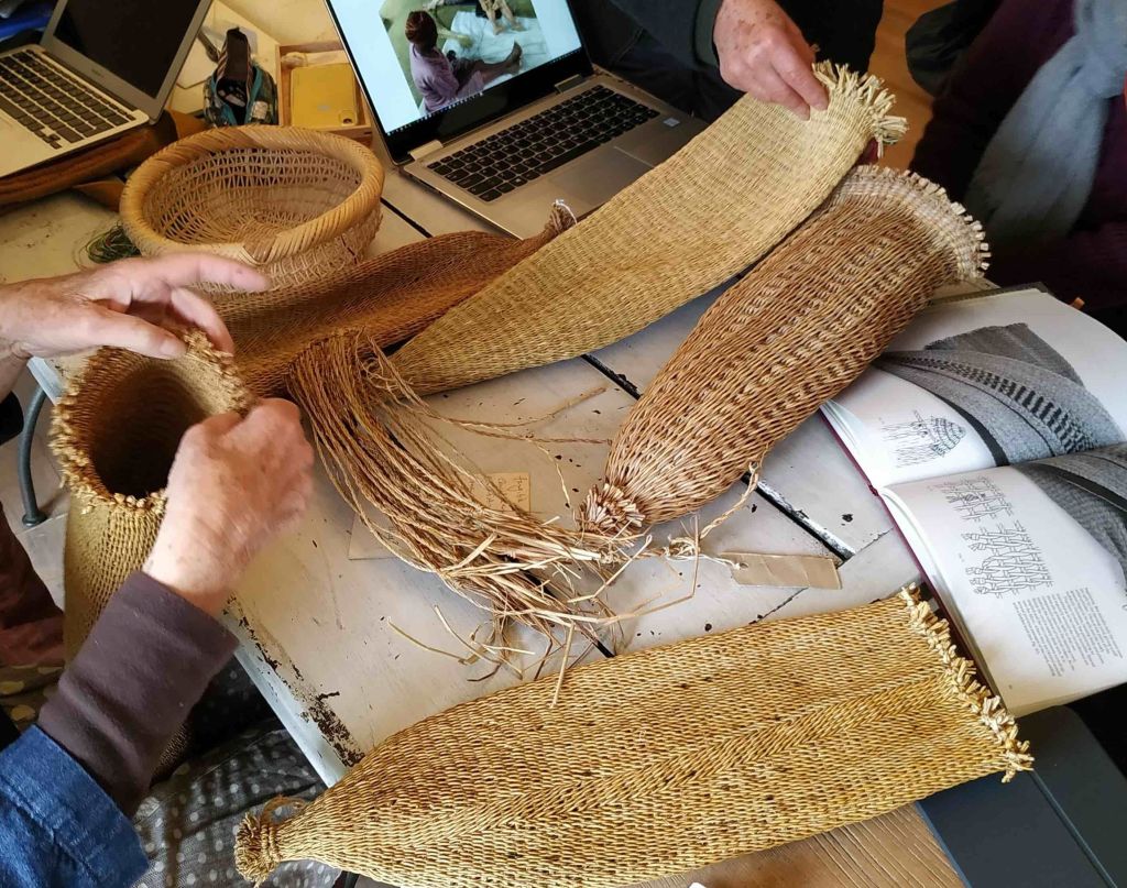 Forces in Translation works at the interface between basketry, mathematics and anthropology. We see basketry as a fundamental textile form in terms of technique, both historically and contemporarily, from the overlap between stitching, knotting and looping, to the use of twining in both basketry and loom weaving, and parallels between plaited basketry, cordage and braiding. In our research, we aim to explore how the bodily knowledge in basket-work enhances spatial and geometric understanding through the gestural moves we make and bodily skills we use. We are also concerned that the social aspects of learning together are fundamental, whether for craft or more academic subjects. The making process, from material to artefact, from plant to basket and from being a ‘lone scholar’ to learning together, further reveals important links with innovative and design thinking, from planning and problem-solving, to dexterity, attention, rhythm, focus and creating narratives. This has relevance for education and learning, spatial awareness, geometric understanding, and creativity.