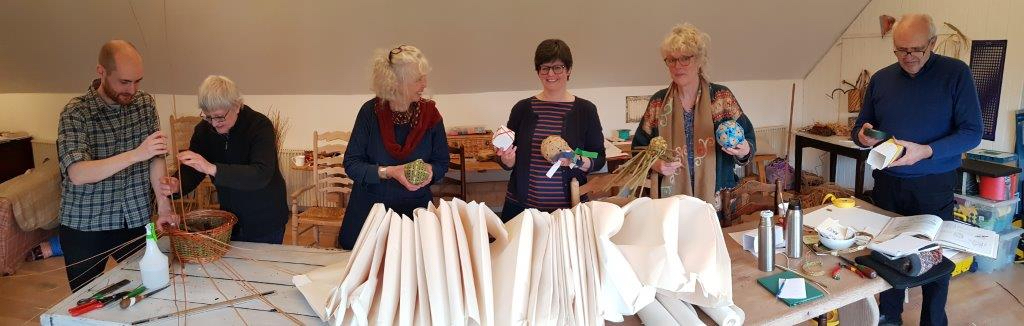 Left to right and top to bottom in image above: Mary Crabb – Basketmaker and Textile Artist, Dr Stephanie Bunn – University of St Andrews, Professor Ricardo Nemirovsky – Manchester Metropolitan University, Hilary Burns – Basketmaker, Geraldine Jones – Basketmaker and Sculptor, and also Professor Cathrine Hasse – University of Aarhus.