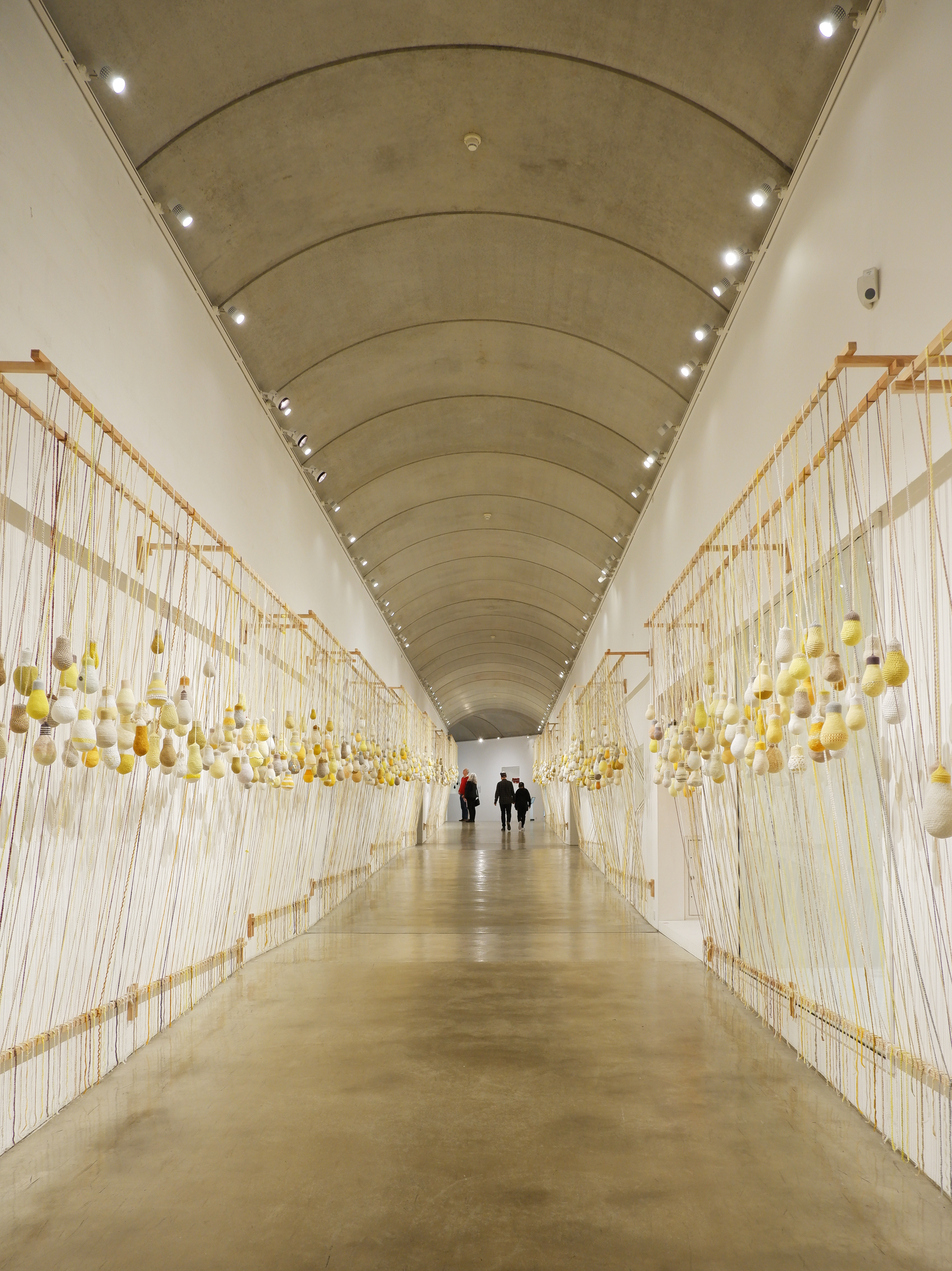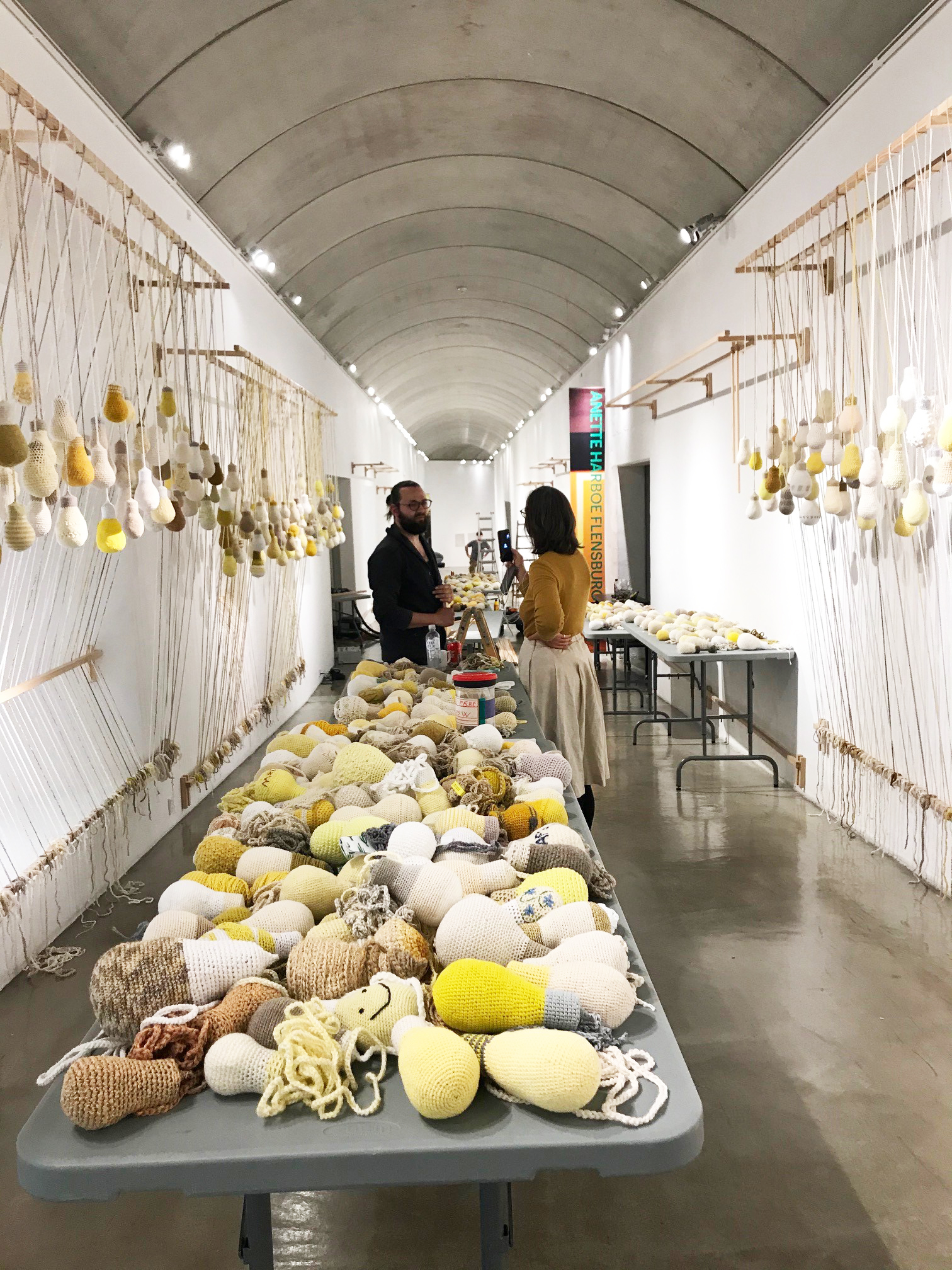 On 1st April 2020 Trapholt launched LIGHTHOPE via SOME platforms and in the national media by inviting people to crochet “lightbulbs” that could bring light into dark times. Hanne G. created instructions based on yarn in popular colours many people might have in their drawers: beige, white and yellow. A toilet roll core was the socket, with ironic reference to the initial hoarding of toilet rolls in the first days of the lockdown. We asked participants to follow very simple rules and inspired them to be as innovative as they wanted to be in the crochet pattern, mix of colours etc. With these lightbulbs, Rasmus Bækkel Fex created the LIGHTHOPE installation structure for Trapholt’s central gallery, a 50-metre long corridor that all visitors enter. It was like a pergola, signifying a tunnel with light at the end, which we all had to go through during the lockdown. Overall, 2000 people participated on the Facebook platform and 987 participants from Denmark, Iceland, Germany and Faroe Islands contributed 1629 crocheted lightbulbs. They became a long installation down the central corridor gallery welcoming visitors as Trapholt reopened on 1st June.