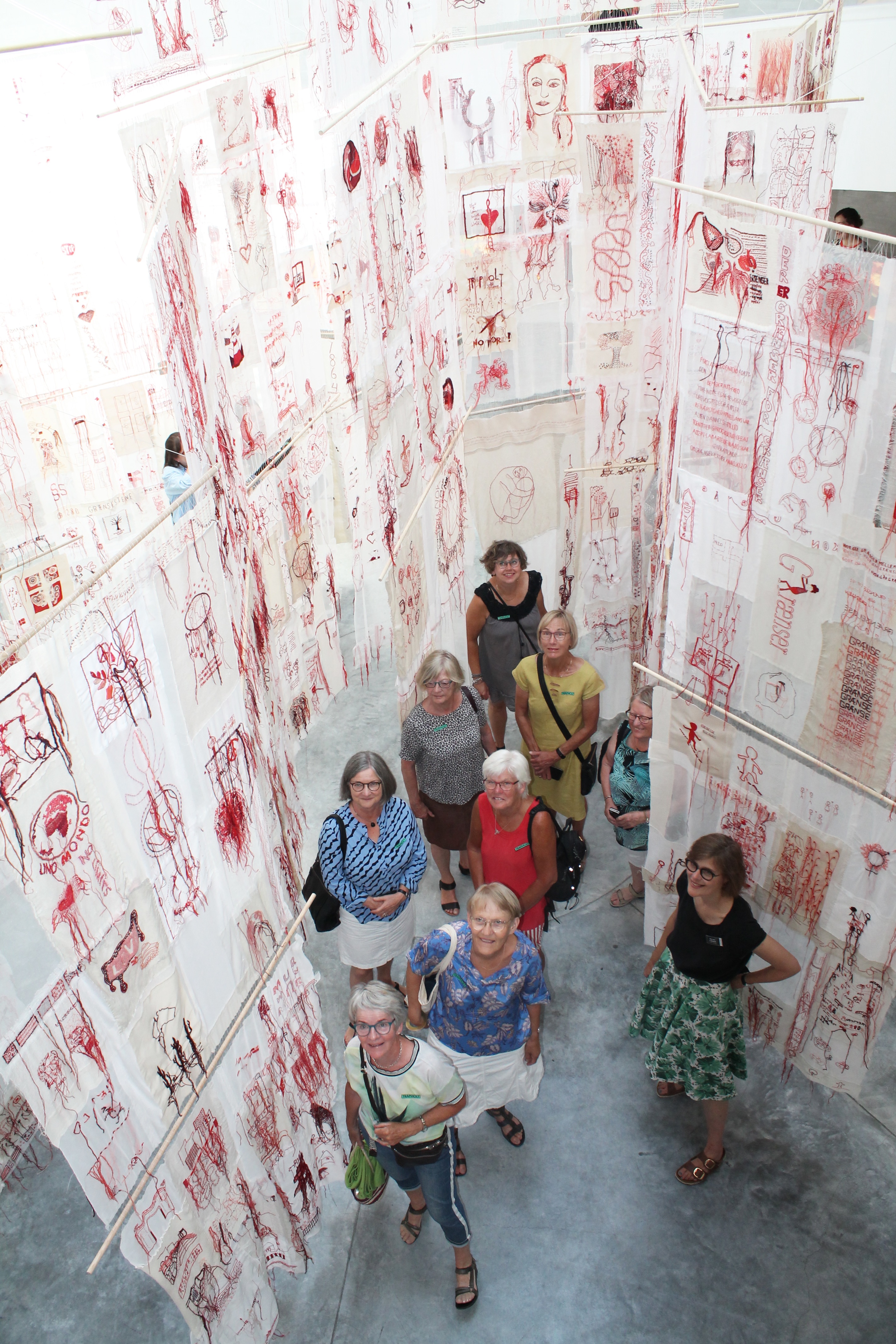 Trapholt prepared in the autumn a participatory art/craft project to start in January 2021. We wanted people to focus on the climate crisis. Textile artist Tina Ratzer invited participants to reflect on whether they can think of a tree, which has a special significance to them, and then quilt a leaf inspired by this particular tree. In collaboration with libraries, craft communities and nature guides all over the region, we planned local workshops and guided tours in the woods of the region for people to gather, create and have conversations together and with Tina Ratzer.